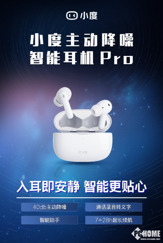 基于双重主动降噪技术,小度主动降噪智能耳机Pro最大降噪深度高达40dB。