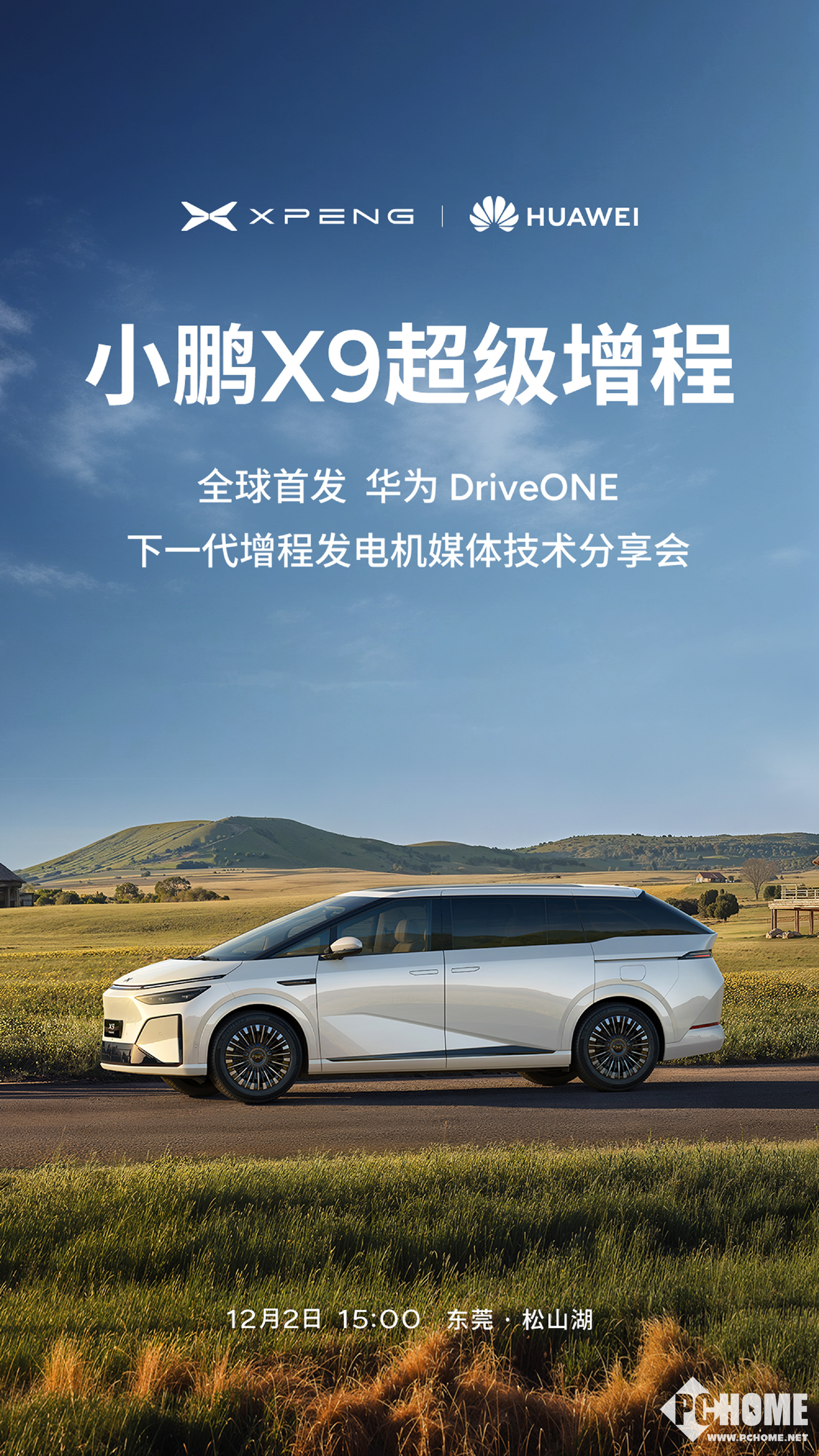 2025年12月2日,小鹏汽车官方宣布,小鹏与华为联手,小鹏X9超级增程全球首发华为DriveONE下一代增程发电机,将于今日下午15点在东莞松山湖联合举办“下一代增程发动机媒体技术分享会”。