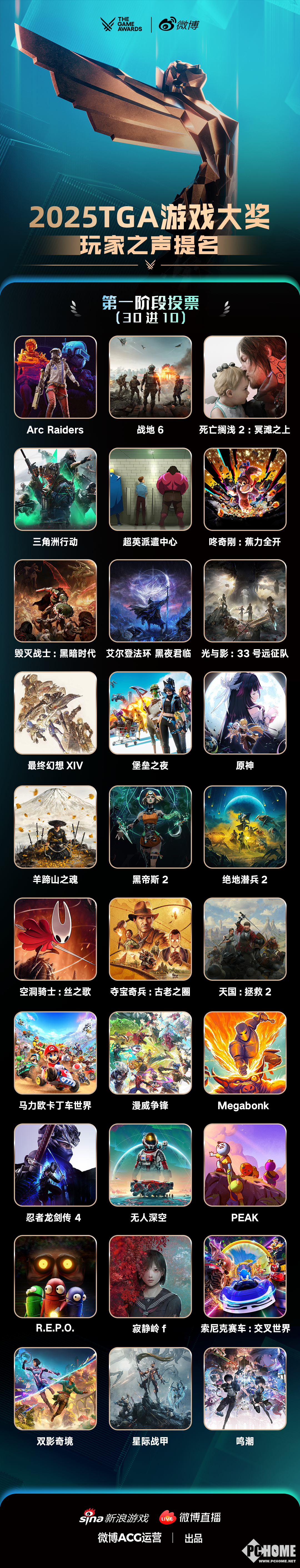 据了解,TGA是由加拿大籍游戏媒体人杰夫·吉斯利主办并主持的电子游戏奖项,以表彰全球过去一年内发售的优秀电子游戏,而TGA 2025玩家之声是TGA2025的年度人气游戏奖项,由全球玩家投票选出,无评委参与,首轮投票从30款游戏中选出10款进入第二轮,后续再经两轮淘汰,最终胜者将于12月11日美国洛杉矶孔雀剧院的TGA颁奖典礼中揭晓。