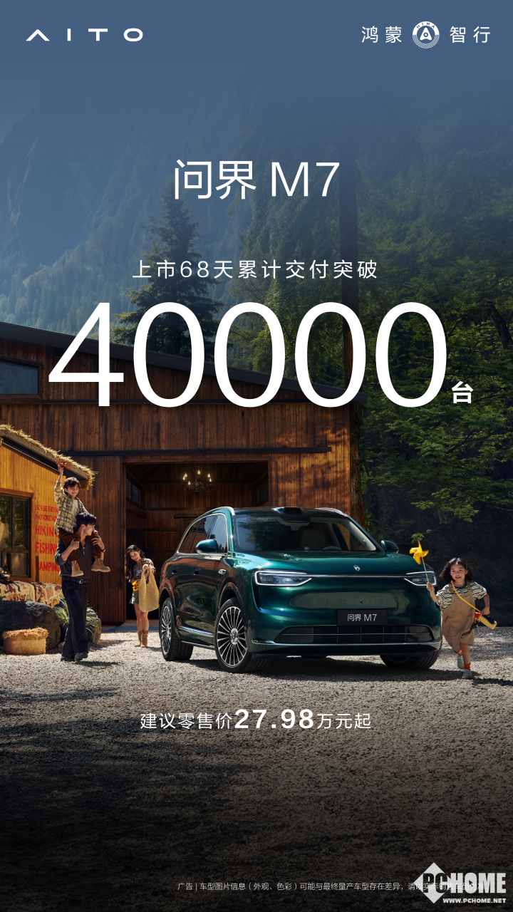 2025年12月2日,鸿蒙智行官微发布消息称,全新问界M7上市68天,交付量突破4万台。