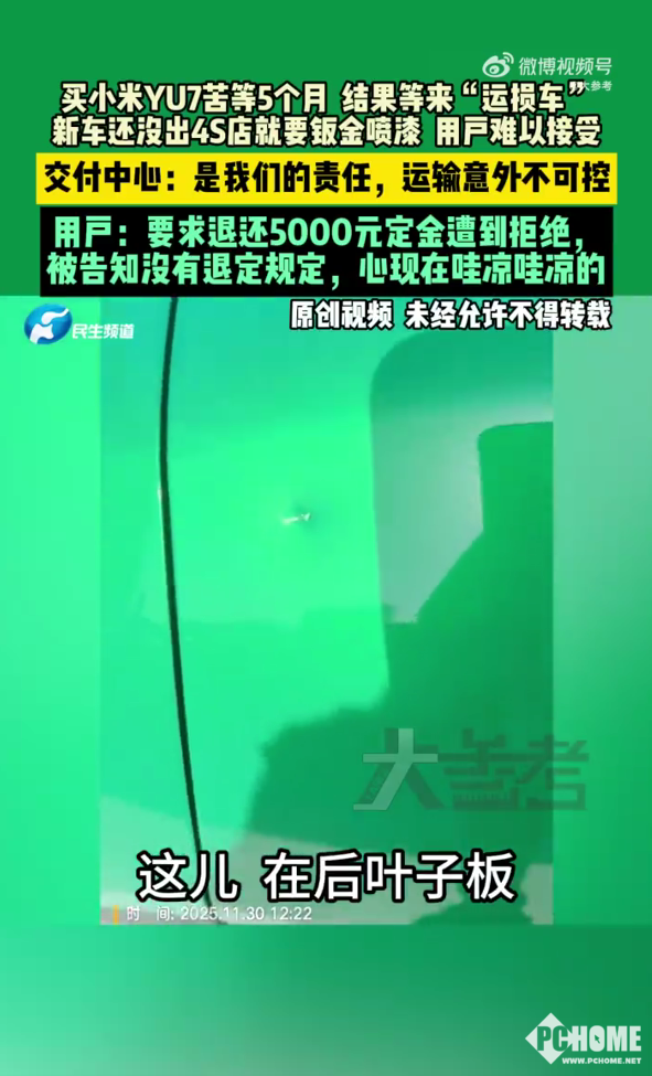 2025年12月2日消息,于12月1日由河南广播电视台民生频道《大参考》栏目报道,郑州的许先生称,自己订购了一辆小米YU7,等了5个月后送来的却是一辆运损车,车身出现了一个坑,许先生表示,“新车还没有出4S店,就要钣金喷漆”,对此,小米交付中心工作人员承认责任,表示运输意外难以控制,并给出了解决方案:原车进行修复加1万积分补偿;在生产周期以内,重新安排生产一台同配置车;外地调拨一台用配置车。