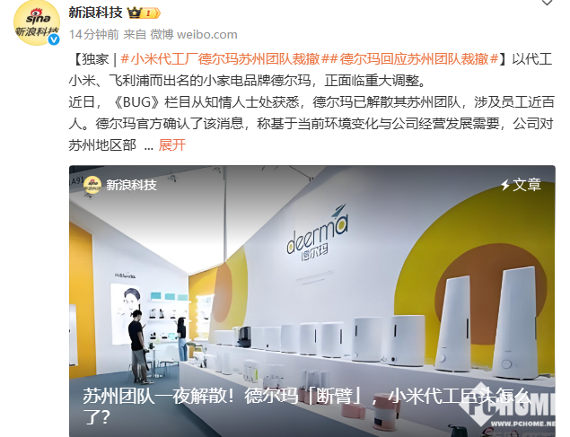 2025年12月3日消息,据新浪科技报道,以代工小米、飞利浦而知名的家电制造企业德尔玛,已确认裁撤且苏州分公司,涉及员工近百人。知情人士透露,德尔玛苏州分公司主要负责吸尘器、洗地机、扫地机等清洁业务,此次裁撤与公司业绩下滑有直接关系。