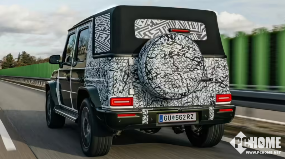 据了解,该车采用四门软顶敞篷设计,外观保留G级经典方正造型,软顶可伸缩,第三高位刹车灯集成在备胎架上,C柱加粗并配有黑色饰条区分车身与车顶。与此同时,其动力系统预计将沿用现款燃油版配置,消费者有两种选择:一种是3.0T直列六缸(可输出443马力),另一种是4.0T V8双涡轮增压发动机(可输出577马力)。