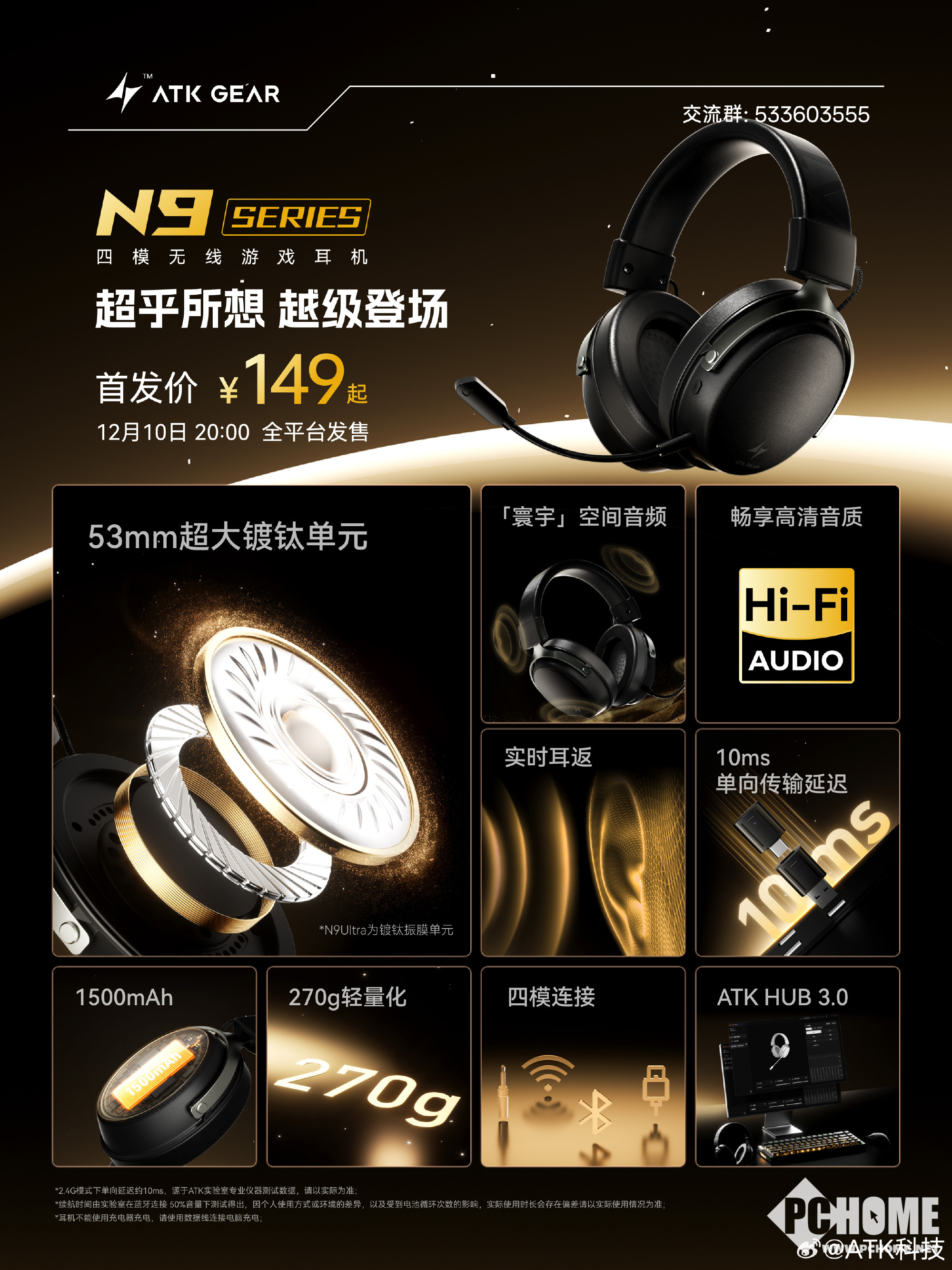 2025年12月4日消息,ATK科技于昨日官宣,ATK海王星N9系列耳机发布,将于12月10日20点,ATK海王星N9系列电竞耳机全平台开售,售价149元起,附赠一对冰丝耳罩与ATK冰霸杯。