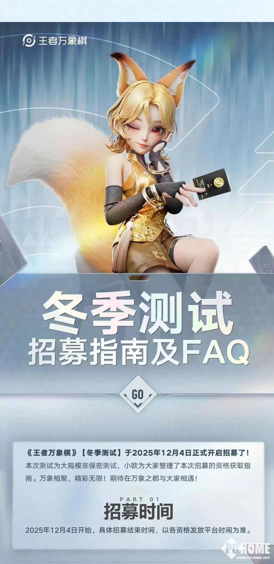 2025年12月4日,腾讯《王者荣耀》IP自走棋游戏《王者万象棋》冬季测试服招募已开启。