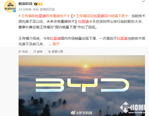 王传福表示,今年比亚迪国内市场销量出现下滑,一方面,由于比亚迪当前技术领先度不及前几年,技术成果的市场惊艳度有所下降,叠加行业同质化特征渐显,这一变化符合产品及技术发展的周期性规律。另一方面,低温充电速度慢等用户需求痛点,也亟待通过技术突破予以解决。值得注意的是,王传福还提到,之所以说目前技术不够领先,因为后面还有重磅技术发布,暂时不方便透露。