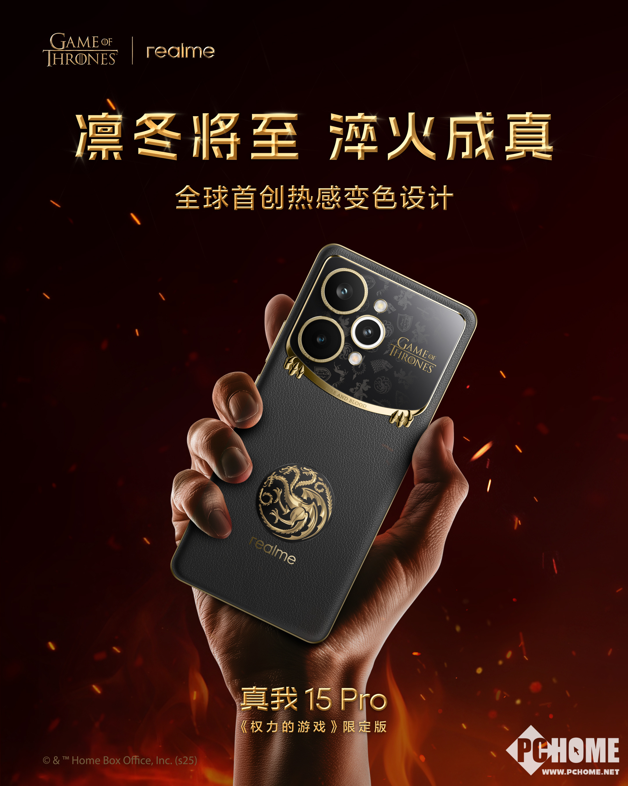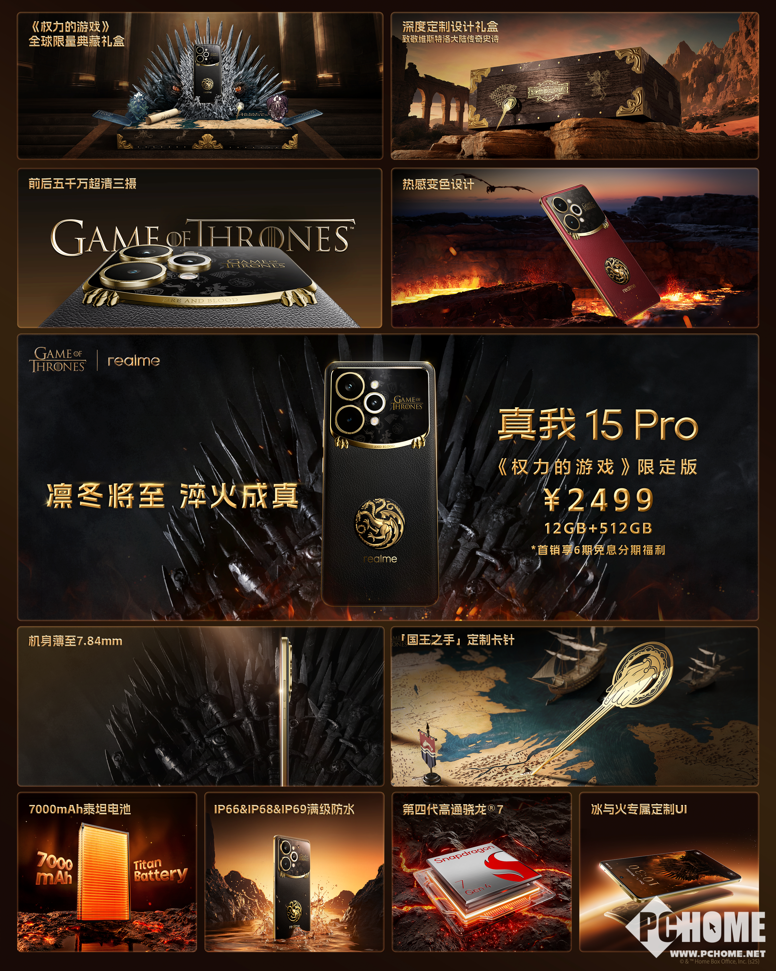 2025年12月8日,真我15 Pro《权利游戏》限定版于今日正式发售,仅提供12GB+512GB版本,售价2499元。
