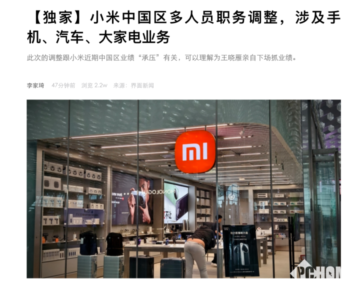 《界面新闻》报道称,小米中国区近期启动大规模人事与渠道优化调整,涉及手机、汽车、大家电等核心业务板块,旨在缓解业绩压力,实现从规模扩张向质量提升的转型。