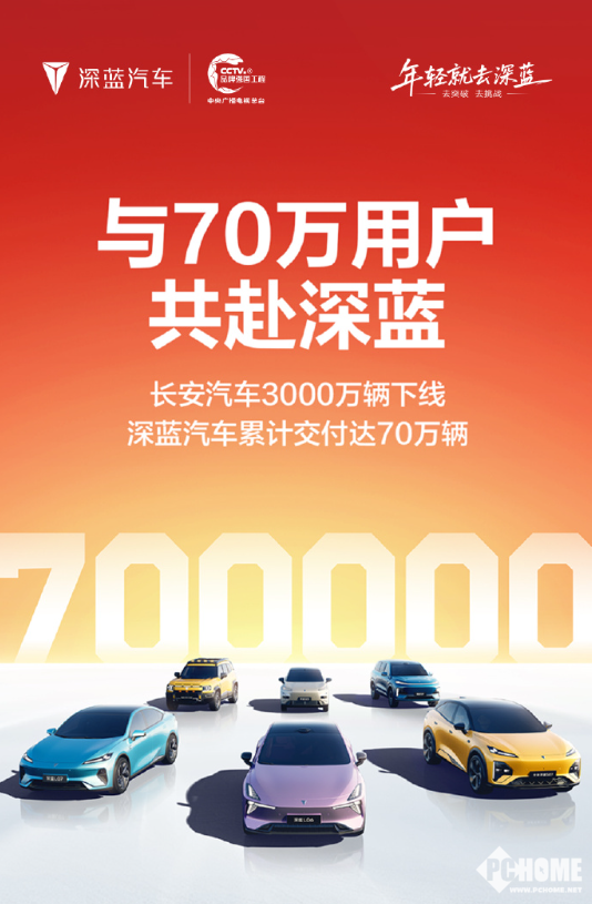2025年12月9日,深蓝汽车官方微博宣布,长安汽车3000万辆下线,深蓝汽车累计交付达70万辆。