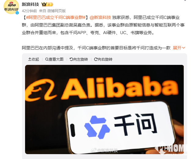 2025年12月9日消息,据新浪科技报道,阿里巴巴成立“千问C端事业群”,由阿里巴巴集团副总裁、阿里智能信息事业部总裁吴嘉负责,该事业群由智能信息与智能互联两个事业群合并整合,包括千问APP、夸克、AI硬件、UC、书旗等业务。