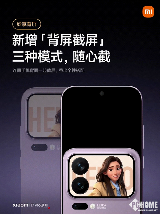 此外,小米17 Pro系列新增背屏专用截屏手势,支持纯净内容、半幅机身带壳、完整机身带壳三种模式,解决了以往无法展示设计效果的痛点。