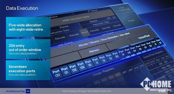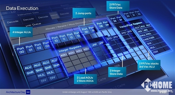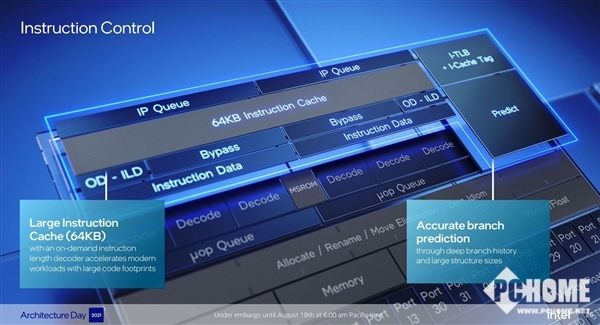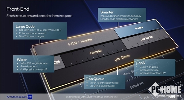 负责指令拾取和解码的前端部分,就发生了翻天覆地的变化,号称近十年来的最大变革,堪比当年的Skylake,官方称它旨在提高速度、突破低时延和单线程应用程序性能的限制。