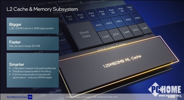 二级缓存,桌面和移动端每核心还是1.25MB,服务器端的Sapphire Rapids则增加到2MB,并支持多路径预取、全写入预测带宽优化,可减少内存读取。
