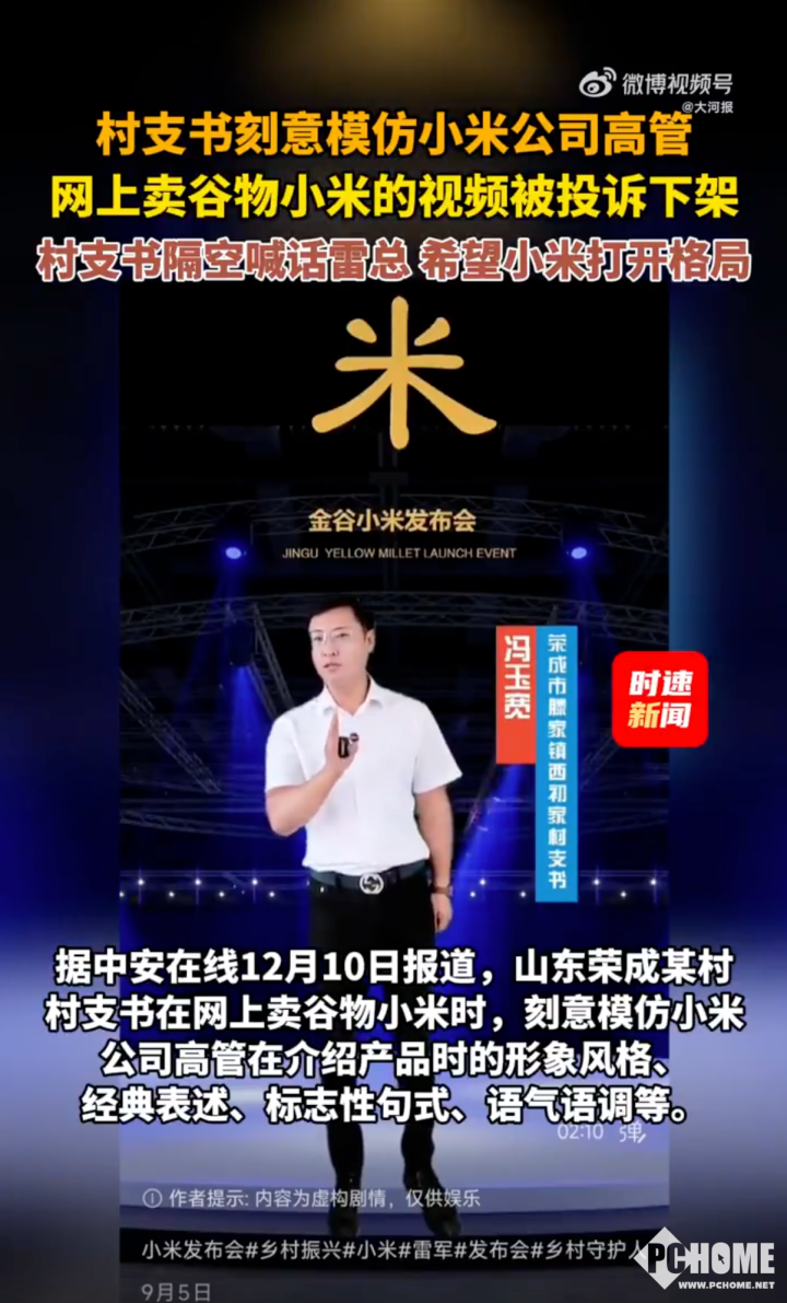 近日,山东威海西初家村村支书冯玉宽因网上售卖谷物小米,其相关推广视频遭小米公司法务投诉下架,引发舆论关注。