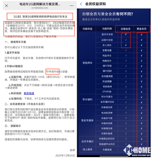 2025年12月15日,新浪科技报道,《BUG》栏目近日进入多个累计超千人规模的哈啰车主维权群发现,诸多用户控诉称,自己购买的哈啰电动车出现“断服”问题,远程定位、在线查看电量等多项“永久会员”功能突然消失,有的用户骑行中甚至突然遭遇“断电锁死”问题,险些酿成车祸。与此同时,因网络不畅,诸多用户原有的会员权益也被一并取消。