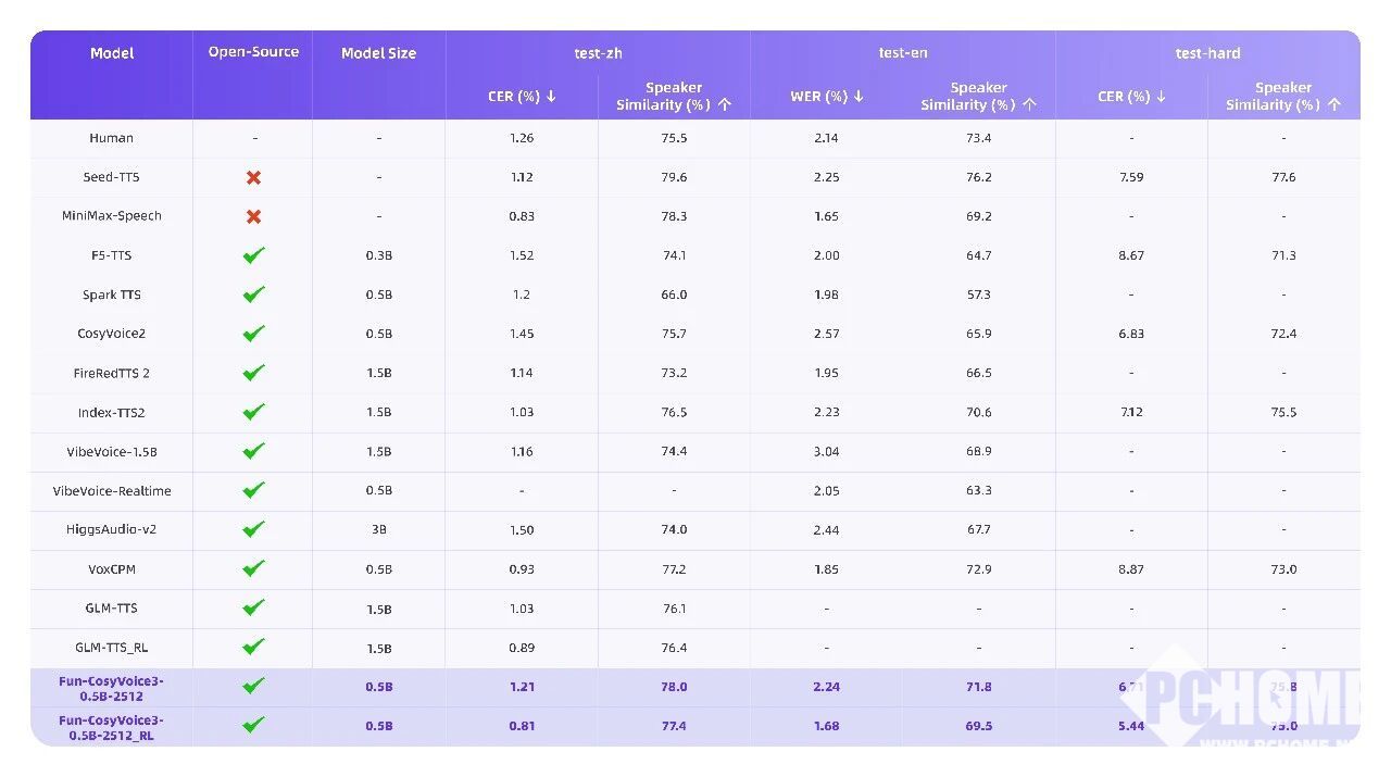 据了解,通义百聆此次升级发布包括,Fun-CosyVoice3 模型升级:首包延迟降低 50%,中英混字准确率翻倍;Fun-CosyVoice3(0.5B)正式开源:提供音色克隆能力,支持本地部署与二次开发;Fun-ASR 模型能力增强:噪声场景准确率 93%,支持歌词与说唱识别,覆盖多语种口音;Fun-ASR-Nano(0.8B)开源:推理成本更低,支持本地部署与定制化微调等。