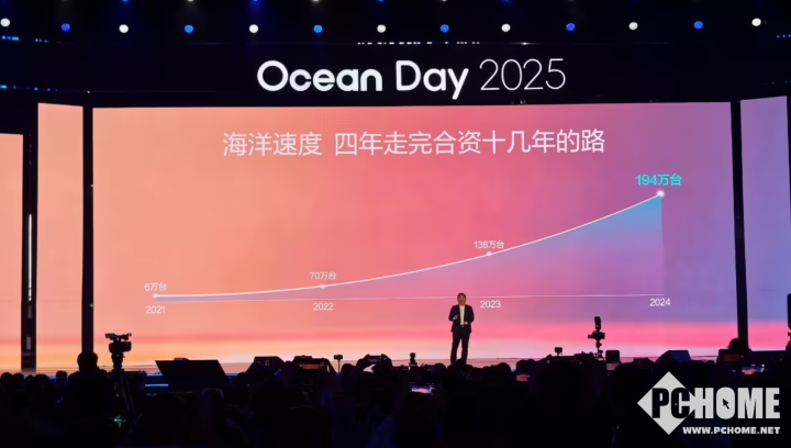 比亚迪从第1000万辆到第1500万辆仅用时约1.5年,而最初达成第一个100万辆则耗时13年,指数级增长态势显著。数据显示,2025年前11个月比亚迪累计销量达418万辆,同比增长11.3%,其中海洋网销量203万辆,同比增长17.9%,以“四年走完合资十几年的路”的“海洋速度”成为增长核心引擎。