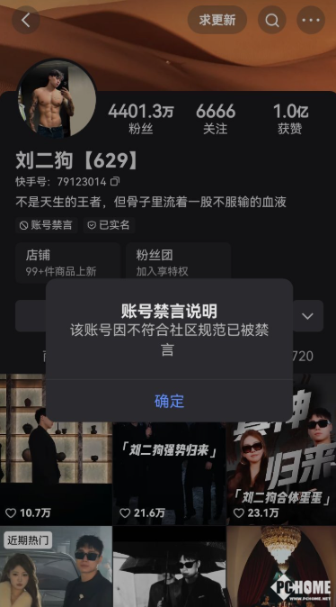 事情爆出后,快手于12月16日回应称账号"不符合社区规范",处罚措施仅为禁止发布新作品并禁言,未封号、未清空往期内容。
