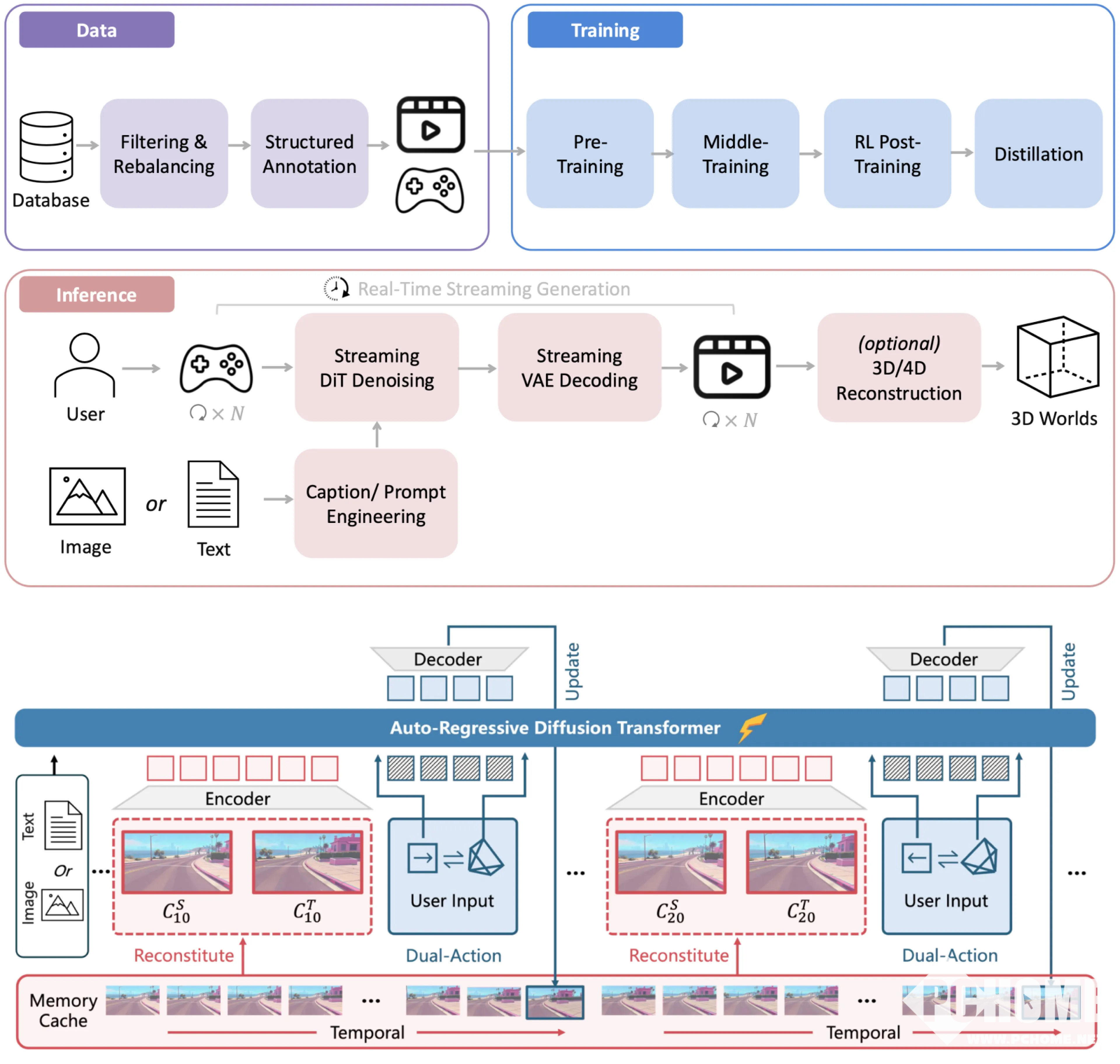 据了解,腾讯混元世界模型1.5通过原创的Context Forcing蒸馏方案与流式推理优化,实现了高清视频的生成,同时支持键盘、鼠标或手柄实时操控虚拟相机移动,采用WorldPlay自回归扩散模型,以视觉自回归任务训练,确保长范围生成连贯性。