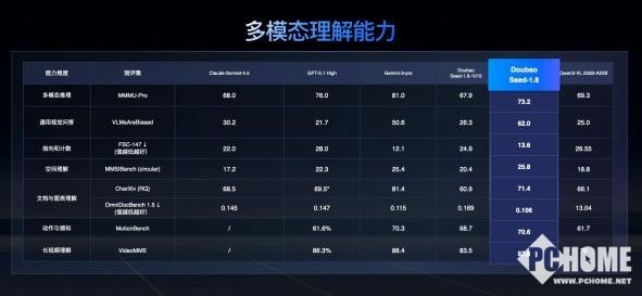 在多项公开评测中,豆包1.8在视觉推理、通用视觉问答、空间理解及视频理解等任务中,均获得最佳或接近最佳成绩。在通用智能体测评集BrowserComp上表现全球领先,在数学与推理等基础能力维度上,整体水平已接近全球顶尖的通用模型,多模态Agent能力进入全球第一梯队。