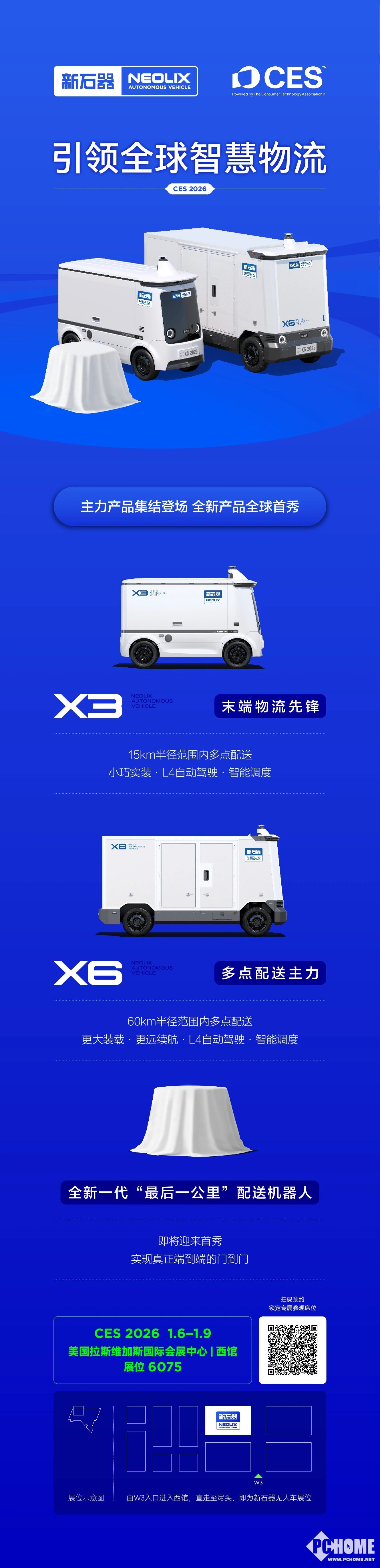 新石器无人车宣布首次亮相美国拉斯维加斯CES 2026展会,并面向全球首次展示全新一代“最后一公里”配送机器人。