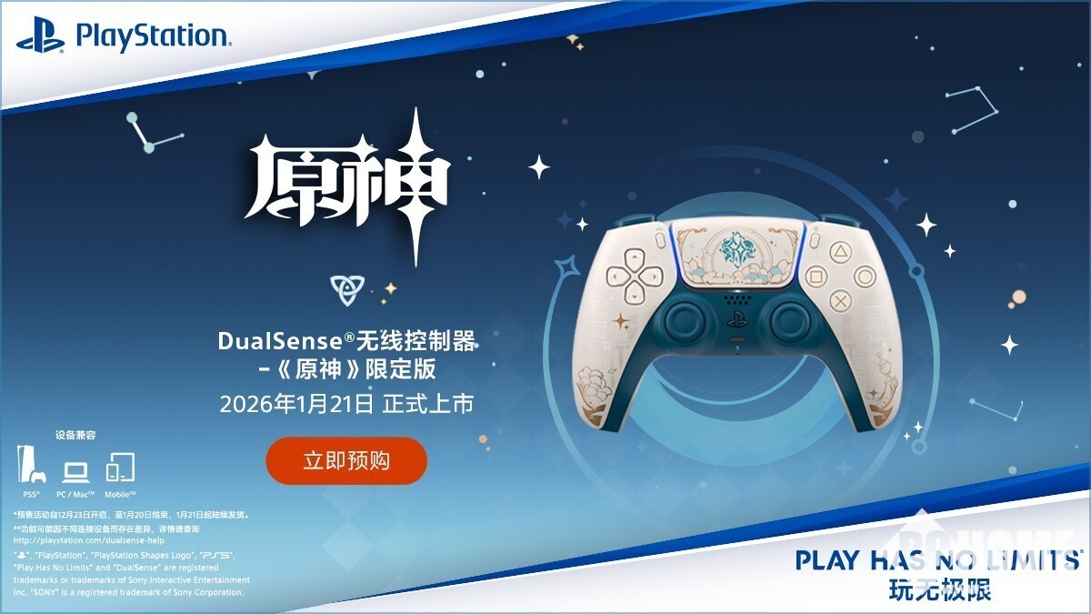 2025年12月24日消息,索尼PS5《原神》限定版DualSense无线控制器国行已于昨日开启预售,售价639元,预计明年1月21日上市。