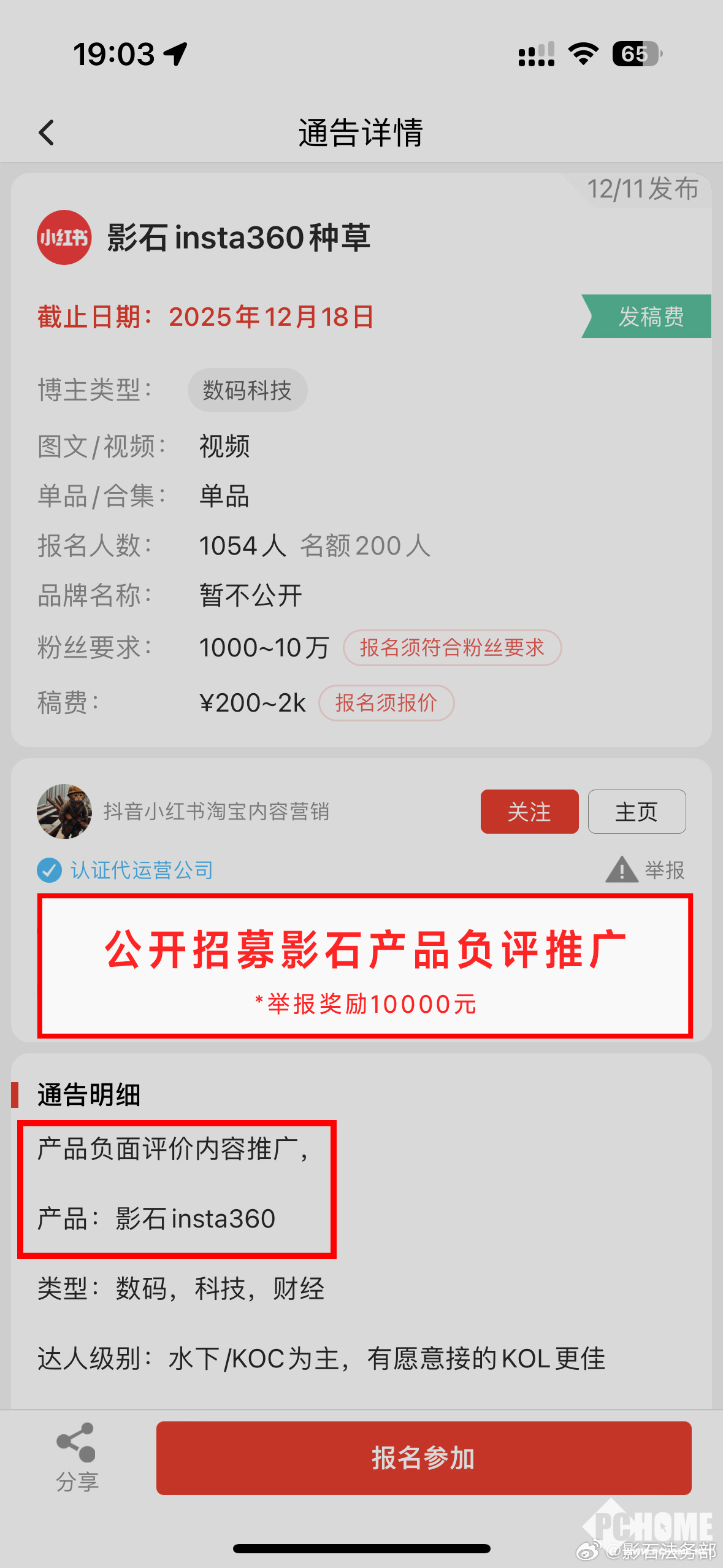 据了解,该公司遭到虚假恶意内容攻击后启动了黑公关线索征集,全网悬赏恶意造谣、组织诋毁影石品牌等违法违规行为线索,线索/证据经我司采纳,每条奖励1千到1万元不等;若被公安机关采纳,每条奖励1万到10万元不等。