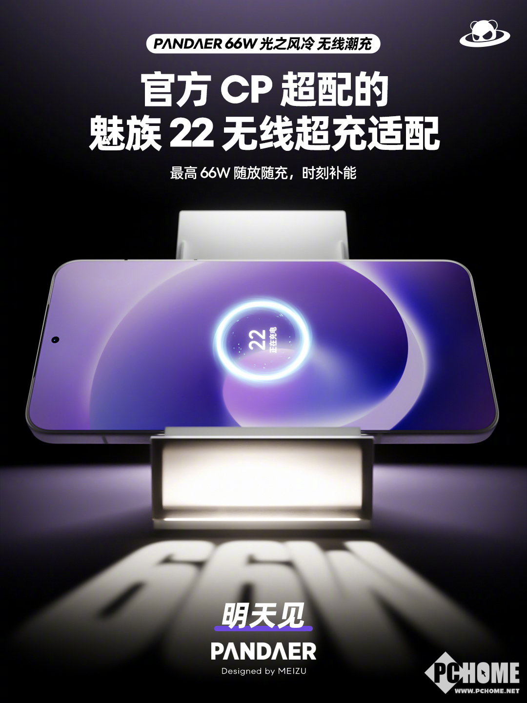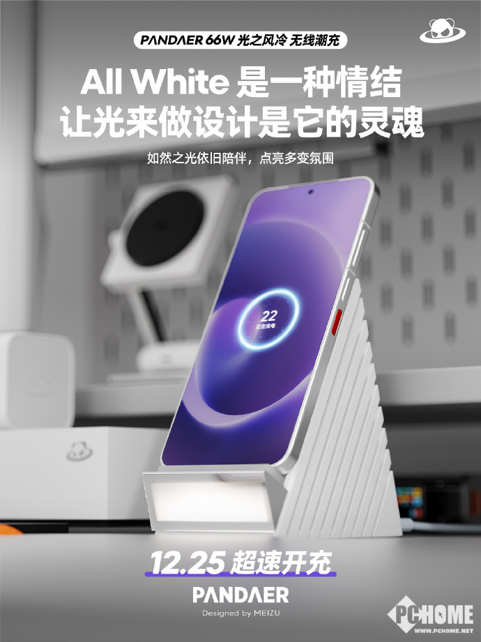 魅族科技官方微博今日发文,宣布魅族PΛNDΛER 66W光之风冷无线潮充将于12月25日正式开售。该款充电器有着高达66W的无线快充能力,支持手机横向放置充电。