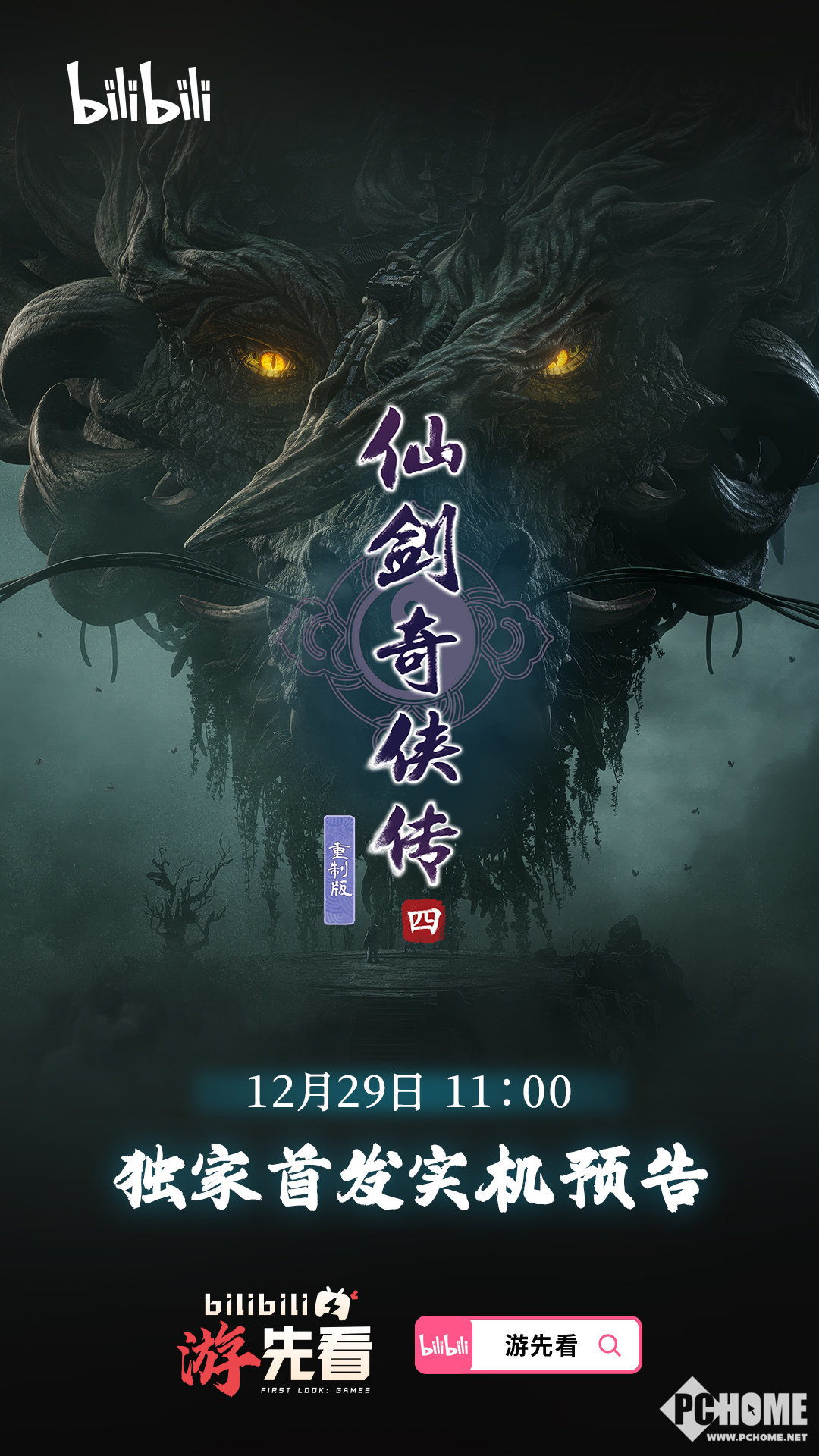 2025年12月25日消息,《仙剑奇侠传四》重制版首支实机预告将于2025年12月29日上午11:00在B站“游先看”活动独家发布。
