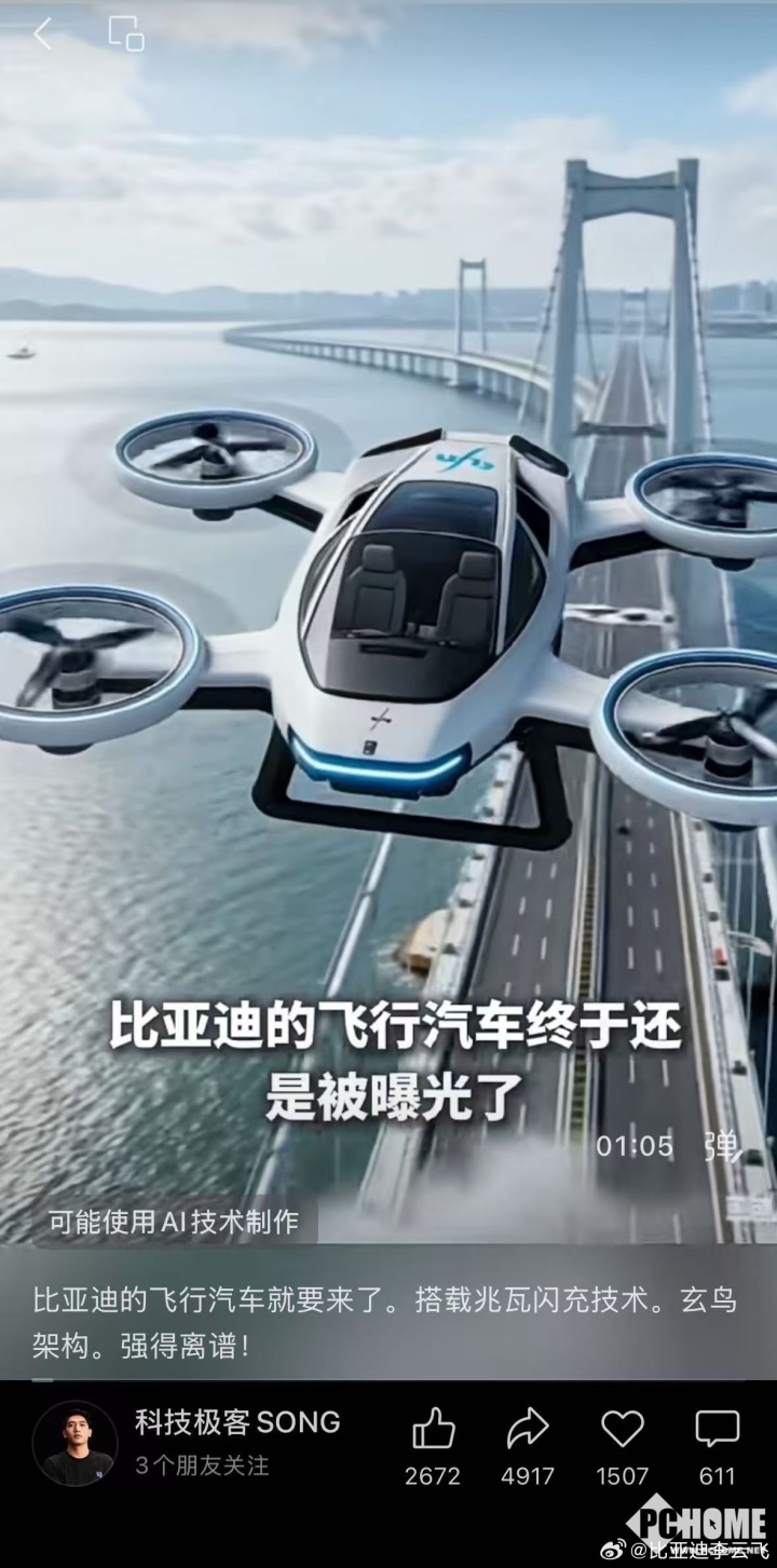 据了解,近期网络热传比亚迪旗下高端品牌“仰望”将推出名为“Ufly”的电动垂直起降飞行器,声称已完成珠海至深圳的136公里跨海试飞,并拿下民航局适航认证,计划2026年投入商业运营。部分传播内容提及“兆瓦闪充技术”“三体式倾转旋翼设计”等专业术语,但相关图片和视频被质疑为AI合成,官方至今未发布任何相关产品信息。