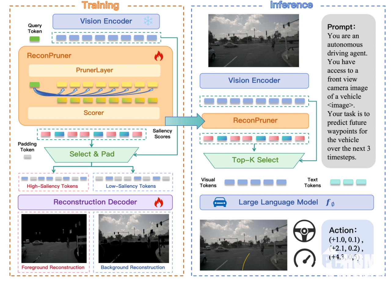 据了解,AAAI 2026是人工智能领域的国际顶级会议之一,共收到23,680份论文投稿,其中4,167篇论文被录用,录用率仅为17.6%,而小鹏联合北大的论文最大的贡献在于,提出了一种专门为端到端自动驾驶VLA模型定制的、高效的视觉Token剪枝框架——FastDriveVLA。同时,小鹏汽车联合北大提出的FastDriveVLA,建立了自动驾驶VLA模型的高效视觉Token剪枝的新范式,同时树立了车端大模型高效部署上车的新标杆。
