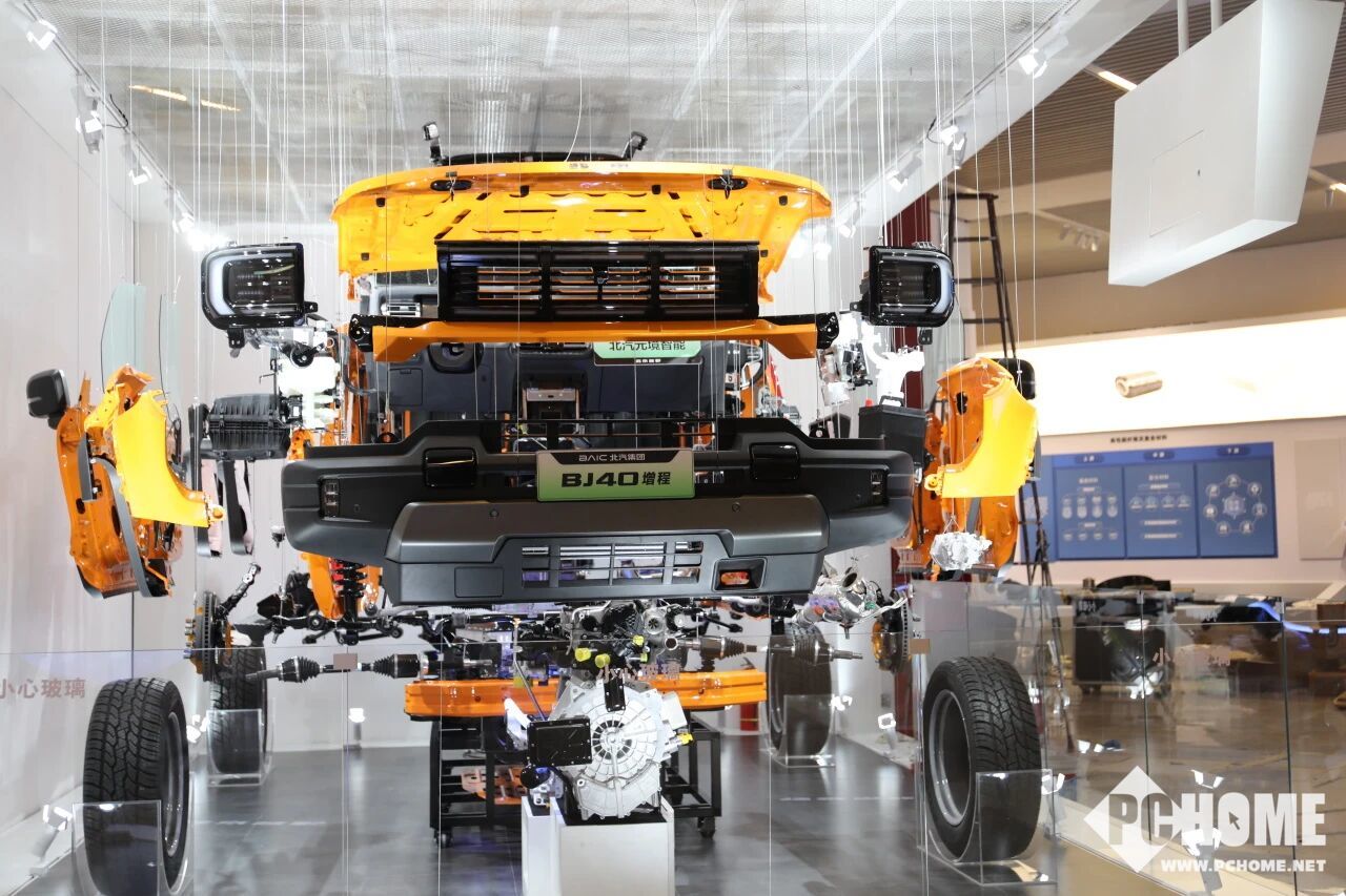 同时,与传统的整车展示不同,BJ40增程解构车采用“整机与零部件功能关联”的创新形式,272个关键总成件,将BJ40增程整车核心构造毫无保留地呈现在公众面前,将底盘、悬挂、四驱系统、增程器等核心模块进行全方位拆解展示。