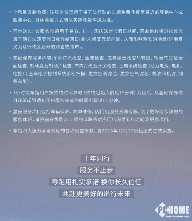 2025年12月30日,零跑汽车公众号发布消息,四大服务承诺正式发布。
