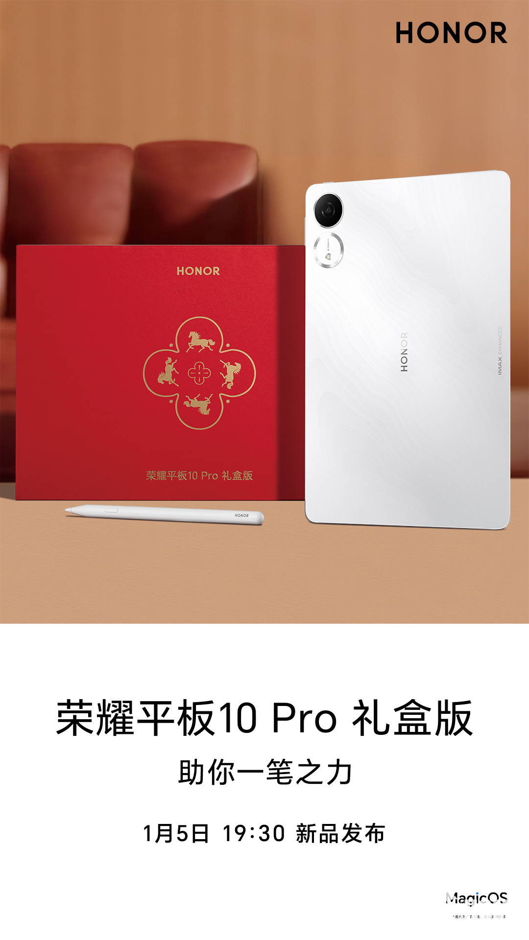 2025年12月31日,荣耀平板与IoT产品领域总经理“荣耀平板利用哥”发布微博,荣耀平板10 Pro惊喜款新春限定礼盒套装,内置全新Magic-Pencil 4s手写笔,将于2026年1月5日发布。