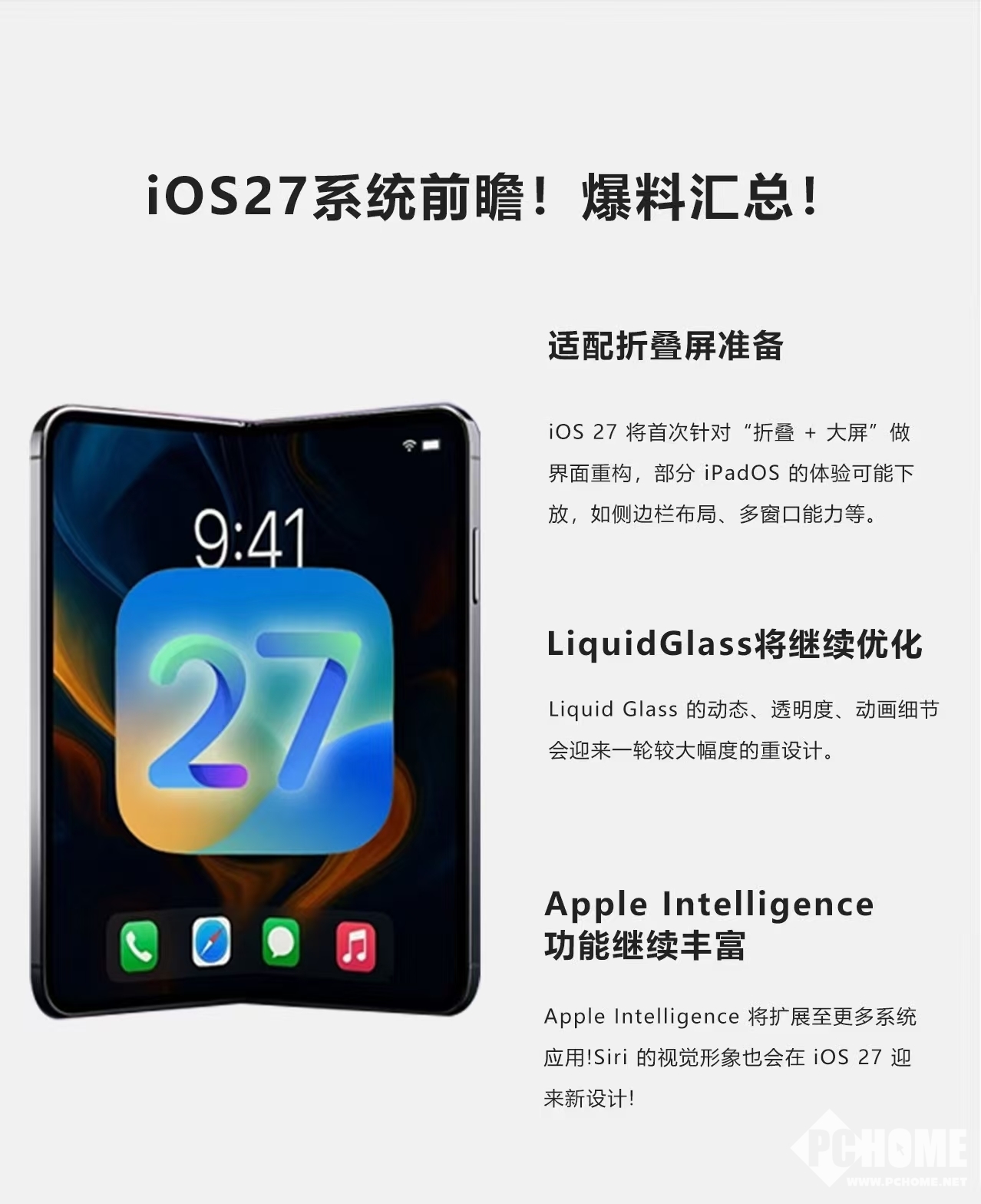 2025年12月31日,苹果iOS27系统前瞻信息密集曝光,将于2026年6月WWDC全球开发者大会正式发布,9月随着新iPhone的同步推送,iPhone 14及后续机型预计可适配。
