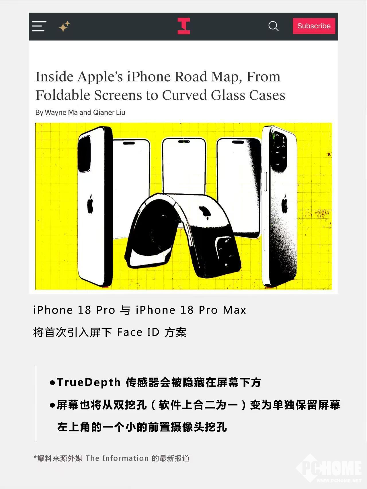 2025年12月31日,据外媒The Information的报道,苹果iPhone 18 Pro系列核心外观曝光再添细节,标志性的灵动岛实现“瘦身”突破,开孔尺寸缩小近半,配合屏下Face ID技术,实现真全面屏视觉体验,成为该机型最受关注的亮点之一。