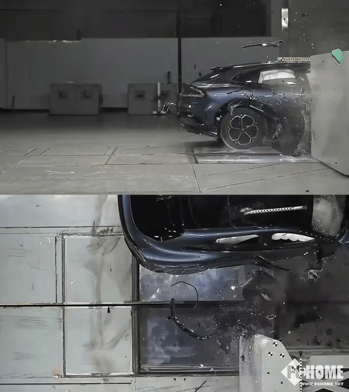 据了解,主动抛轮机制在25%小偏置碰撞等严苛场景下,通过特殊车轮连杆设计主动将轮毂抛出车体,避免坚硬轮毂侵入乘员舱造成二次伤害。该策略结合车身滑移、轮毂旋转等动作分散冲击力,保护乘员舱结构完整性。同时,小米YU7碰撞测试时,时速64km/h,显示轮毂脱落后A柱无形变,乘员舱完好。