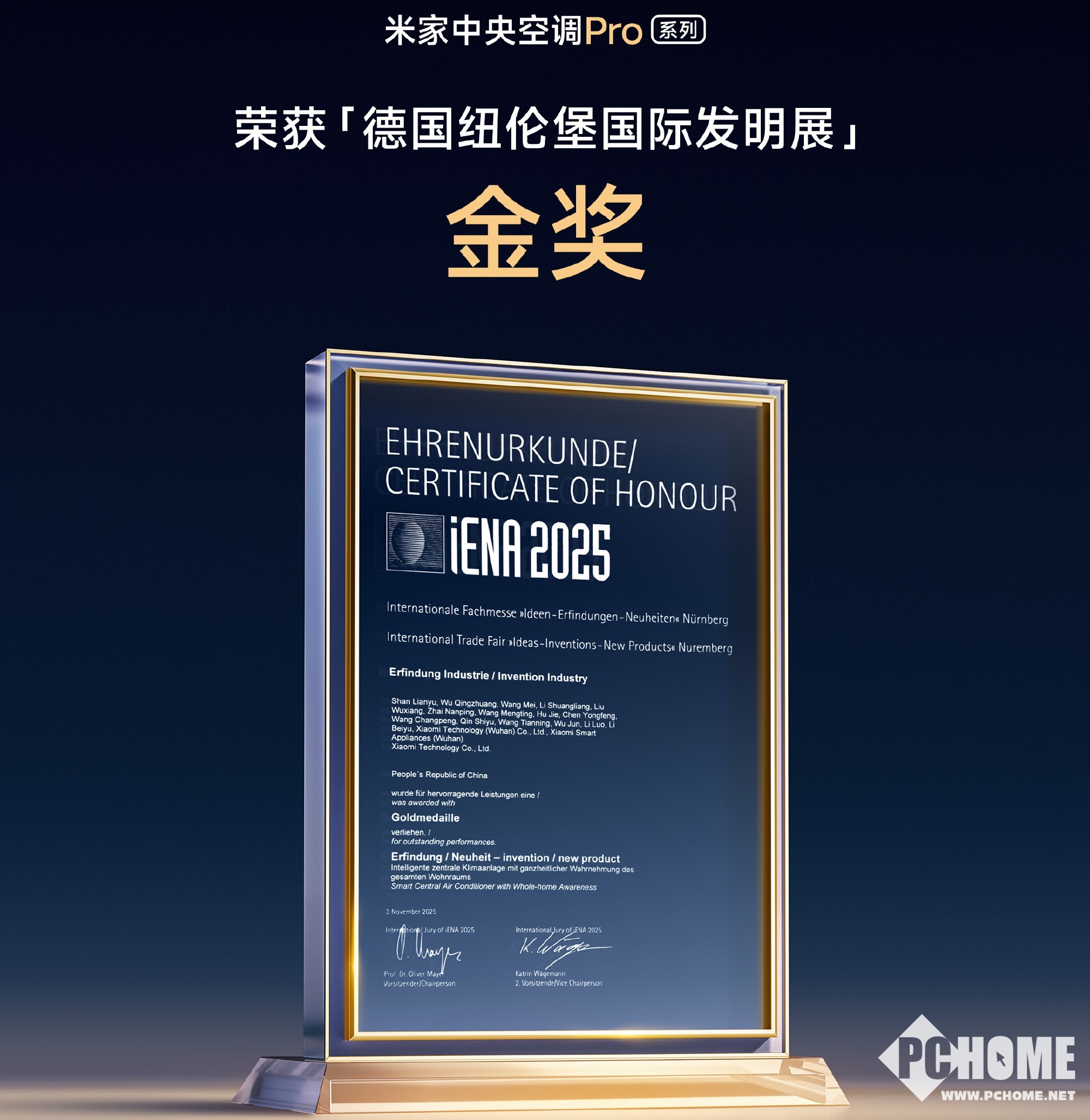 米家中央空调Pro系列凭借双毫米波雷达人感控风技术、AI智能选型技术及小米离子净化技术三大创新成果,荣获第77届德国纽伦堡国际发明展金奖,成为首款获此殊荣的中国中央空调产品。