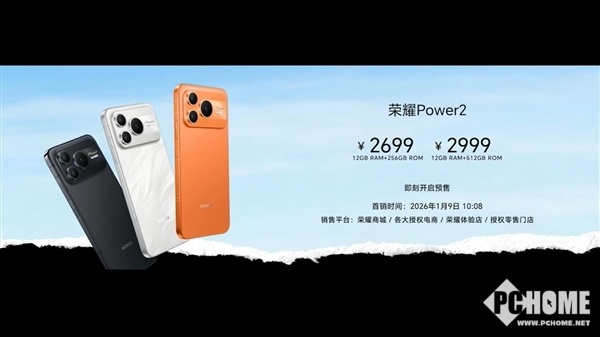 1月5日,荣耀举办新品发布会,正式推出定位“户外轻旗舰”的荣耀Power2手机。价格层面,12GB+256GB版本售价2699元,12GB+512GB版本2999元。