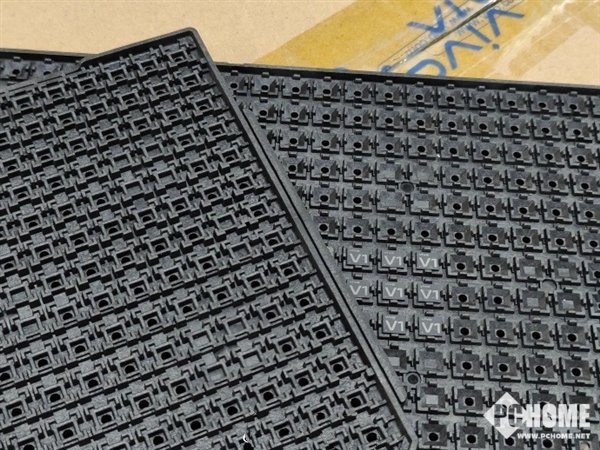 @数码闲聊站 今日发布一张实拍图片,展现了 vivo 自研的“V1”芯片以及配套的托盘。该芯片外观为长方形,BGA 封装,可以看出底部的触点为 45° 排列,芯片正面丝印没有多余的编码等字样。