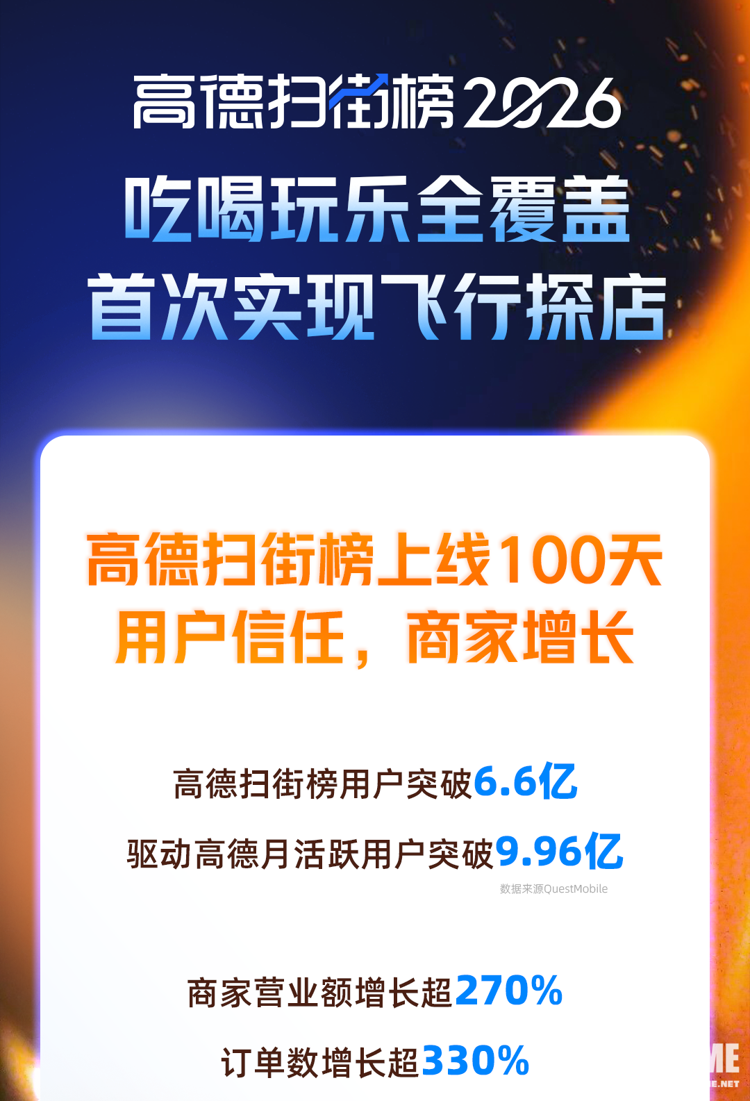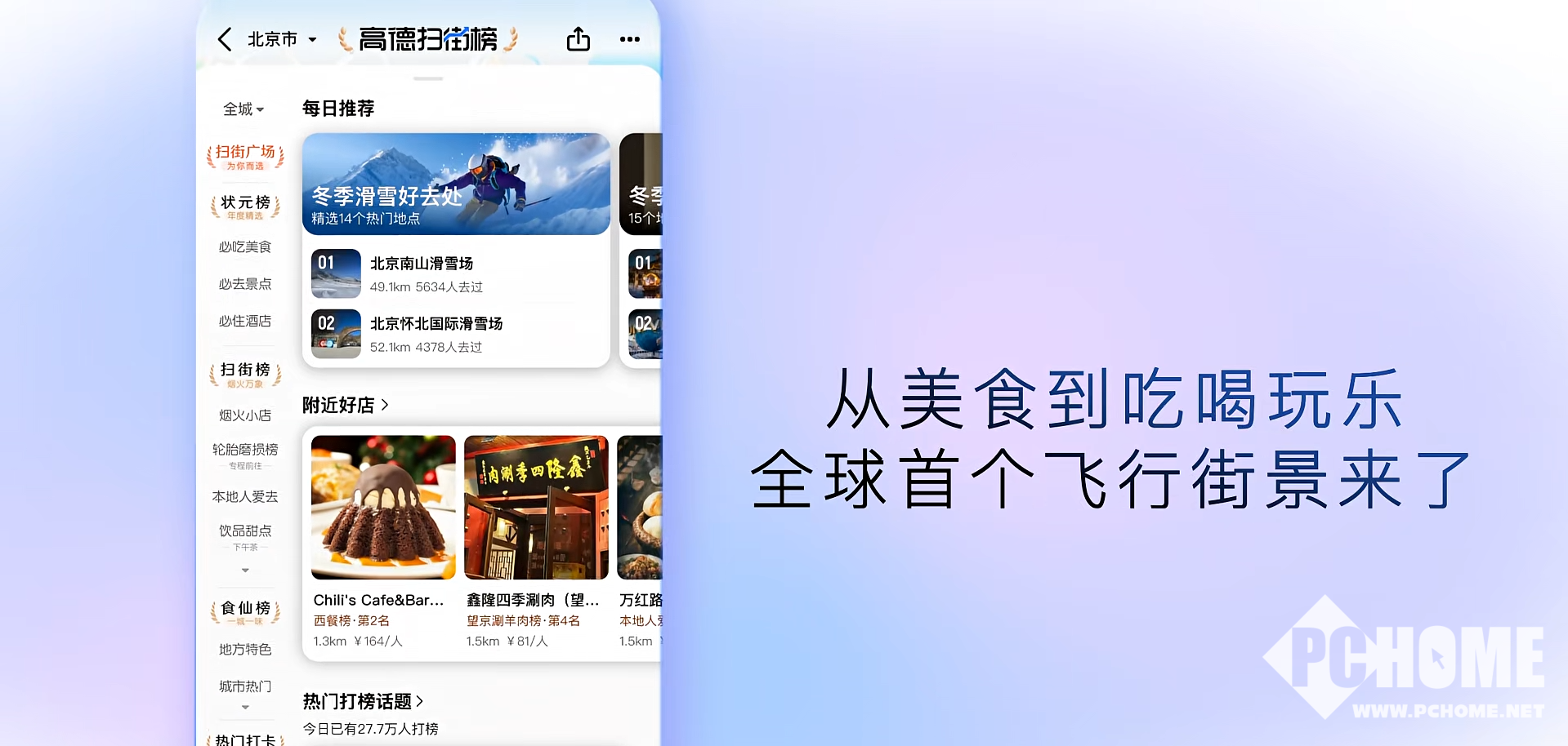 2026年1月7日,高德地图官方账号发布消息,高德扫街榜全新升级,吃喝玩乐全覆盖,首次实现飞行探店。