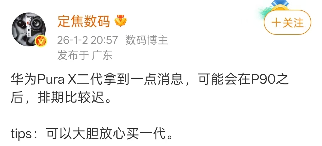此外,此前博主定焦数码已有相关爆料,称这款产品的发布时间将晚于直屏旗舰Pura 90系列,大概率会于2026年第二季度正式发布
