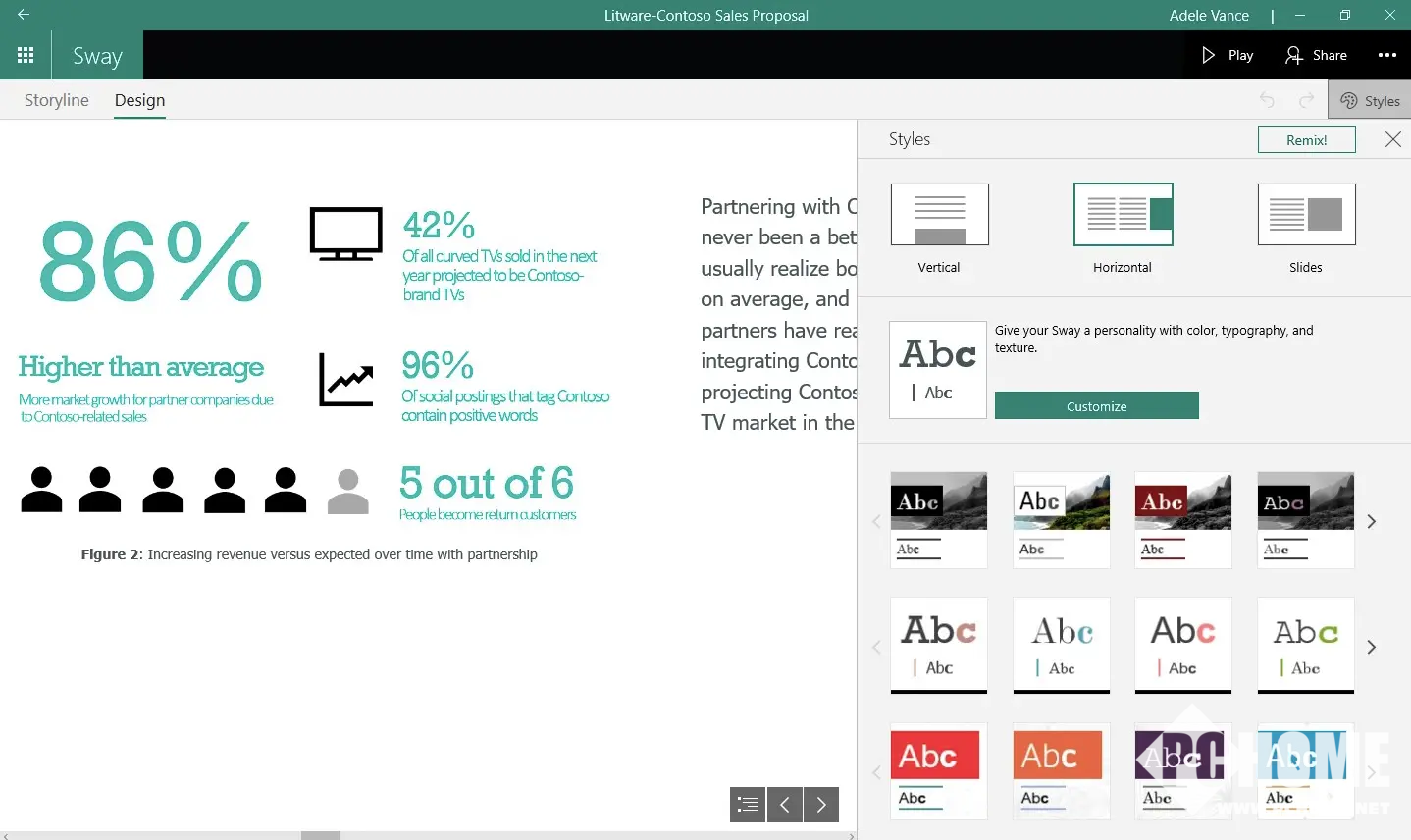 作为微软Office系列的重要成员,Sway于2014年首次亮相,定位为PowerPoint的补充工具,用于制作更加视觉化、交互式的演示文稿、报告及电子简报等内容;用户可凭借自动排版和响应式布局进行跨设备浏览文本、图片、视频等各种素材,并可将其整合。2015年8月正式上线为Windows 10应用,后续陆续新增了照片支持、密码保护等功能。这款免费应用在微软应用商店收获近2000条评价,综合评分达4.1星,英国区域商店评分更是高达4.4星。