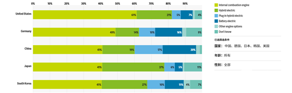 调查还显示,中国消费者的下一辆汽车类型偏好中,燃油车仍是第一位,占比41%,纯电车20%,混动车19%,插混车17%。