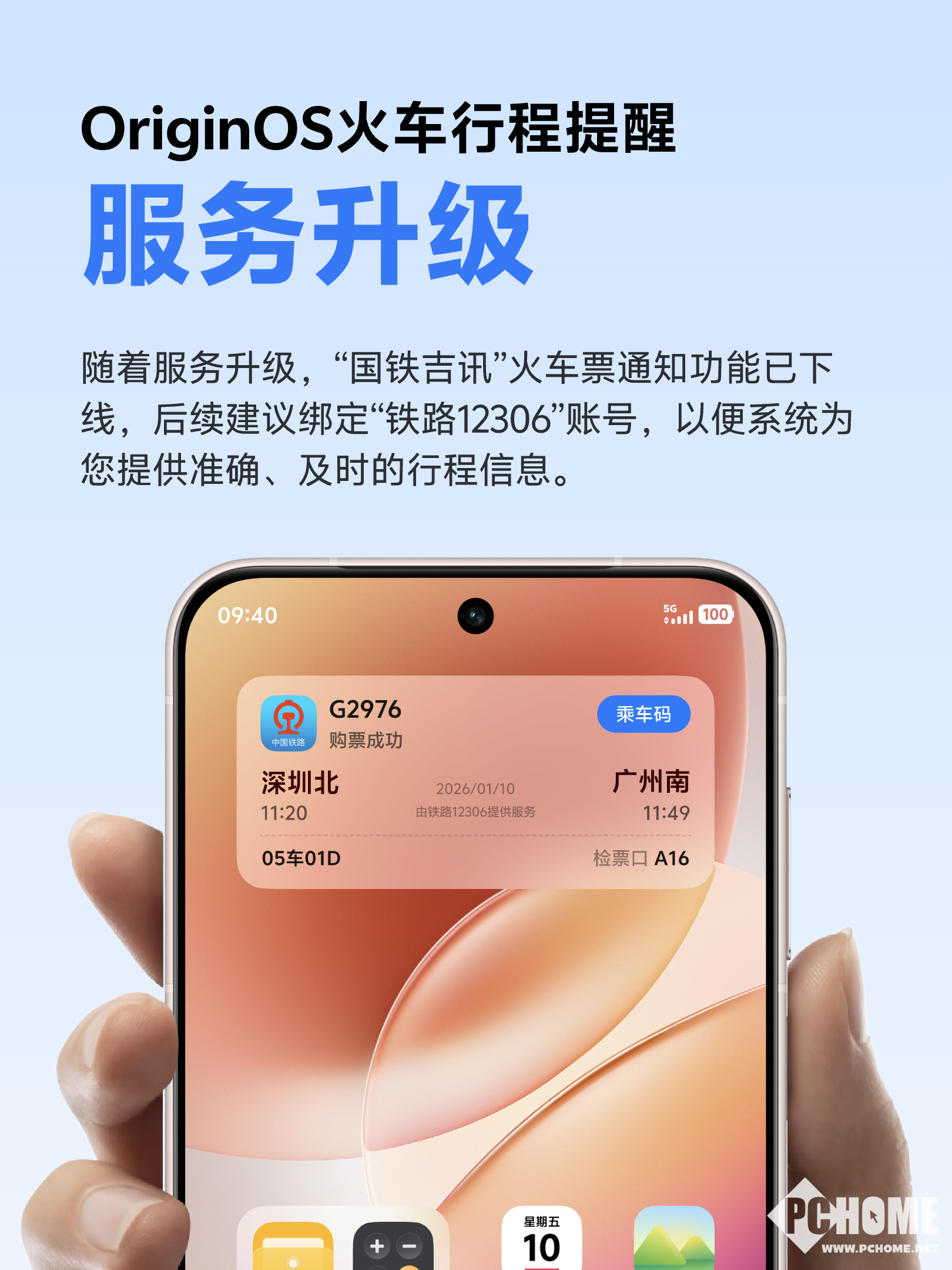 据了解,用户需在系统设置中重新授权绑定“铁路12306”账号,以继续接收行程提醒、检票口变更及晚点通知等服务。此次升级为行业统一调整的一部分,旨在通过官方直连提升信息准确性和推送时效,建议使用OriginOS 5及以上系统版本,并确保铁路12306 App更新至V5.9.4.5或更高版本。