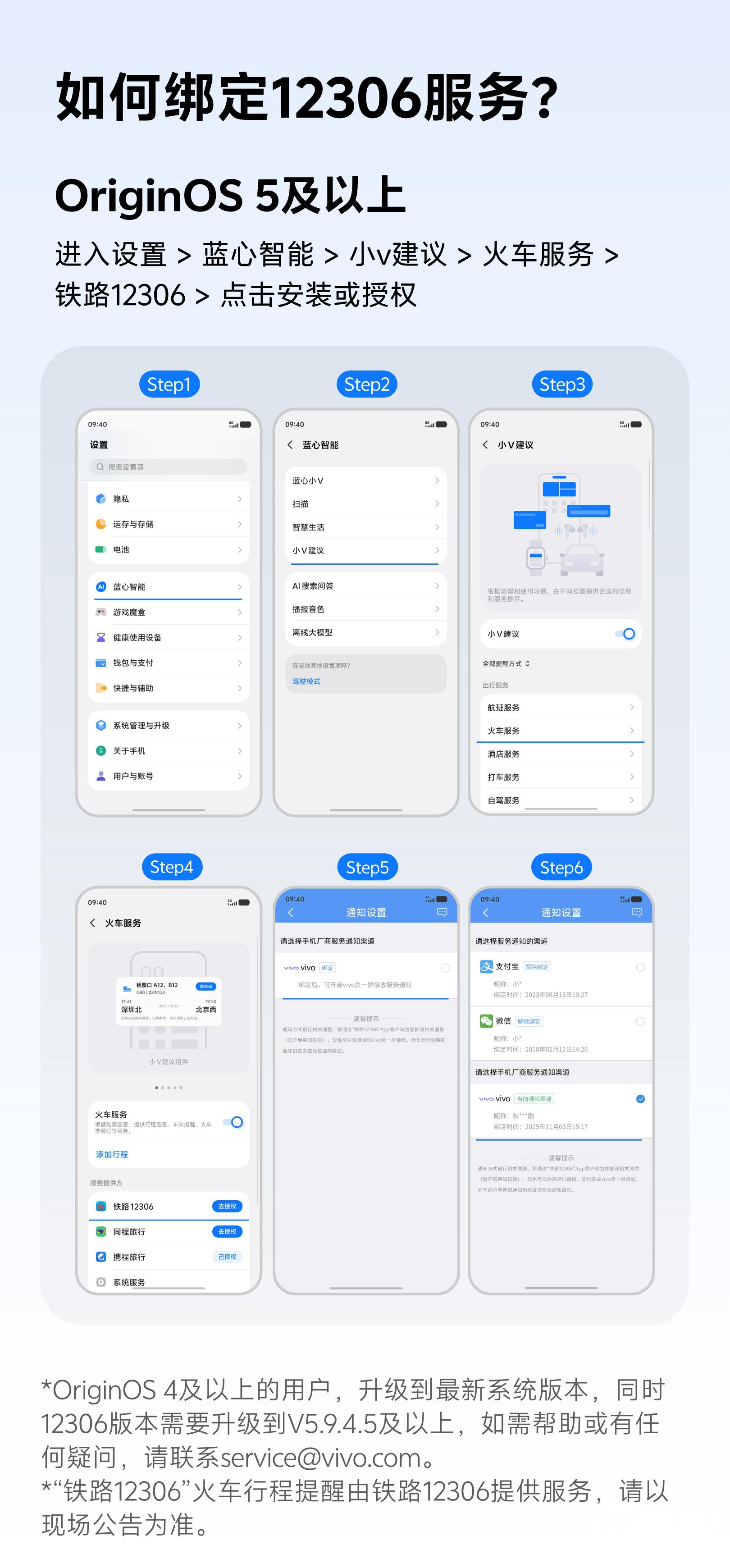 同时,此次调整为行业统一行动,除vivo外,华为、小米、OPPO、荣耀等厂商也逐步完成类似切换,需在手机设置中主动授权“铁路12306”账号:设置-蓝心智能-小V建议-火车服务-铁路12306。
