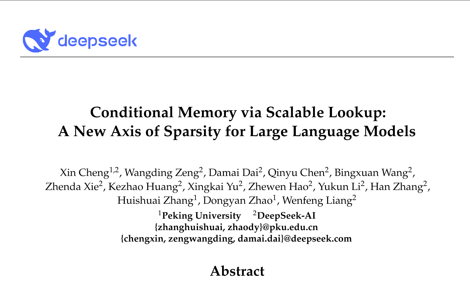 2026年1月13日消息,据新浪科技报道,DeepSeek于12日晚发布新论文《Conditional Memory via Scalable Lookup: A New Axis of Sparsity for Large Language Models》(基于可扩展查找的条件记忆:大型语言模型稀疏性的新维度)。