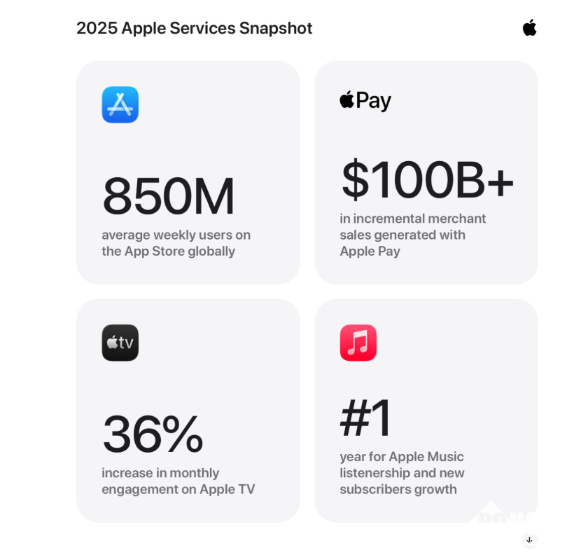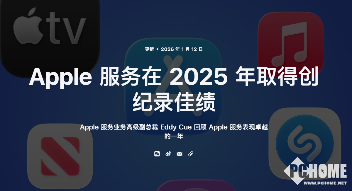 苹果官方发布Apple服务业务高级副总裁Eddy Cue对Apple服务在2025所取得的成绩回顾,并表示:“Apple 服务度过了辉煌的一年,为顾客推出了诸多颠覆性功能,同时刷新了多项纪录”。