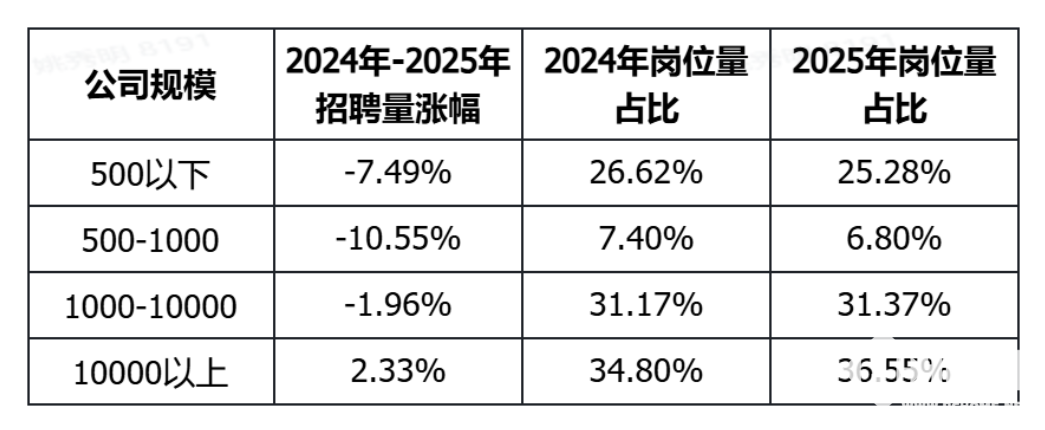在万人以上企业招聘带动下,新经济行业就业形势今日回暖。脉脉数据显示,2025年员工规模1万人以上的企业新发岗位量同比增长2.33%,贡献了全行业36.55%的新发岗位量,成为唯一实现新发岗位量增长的企业规模类型。