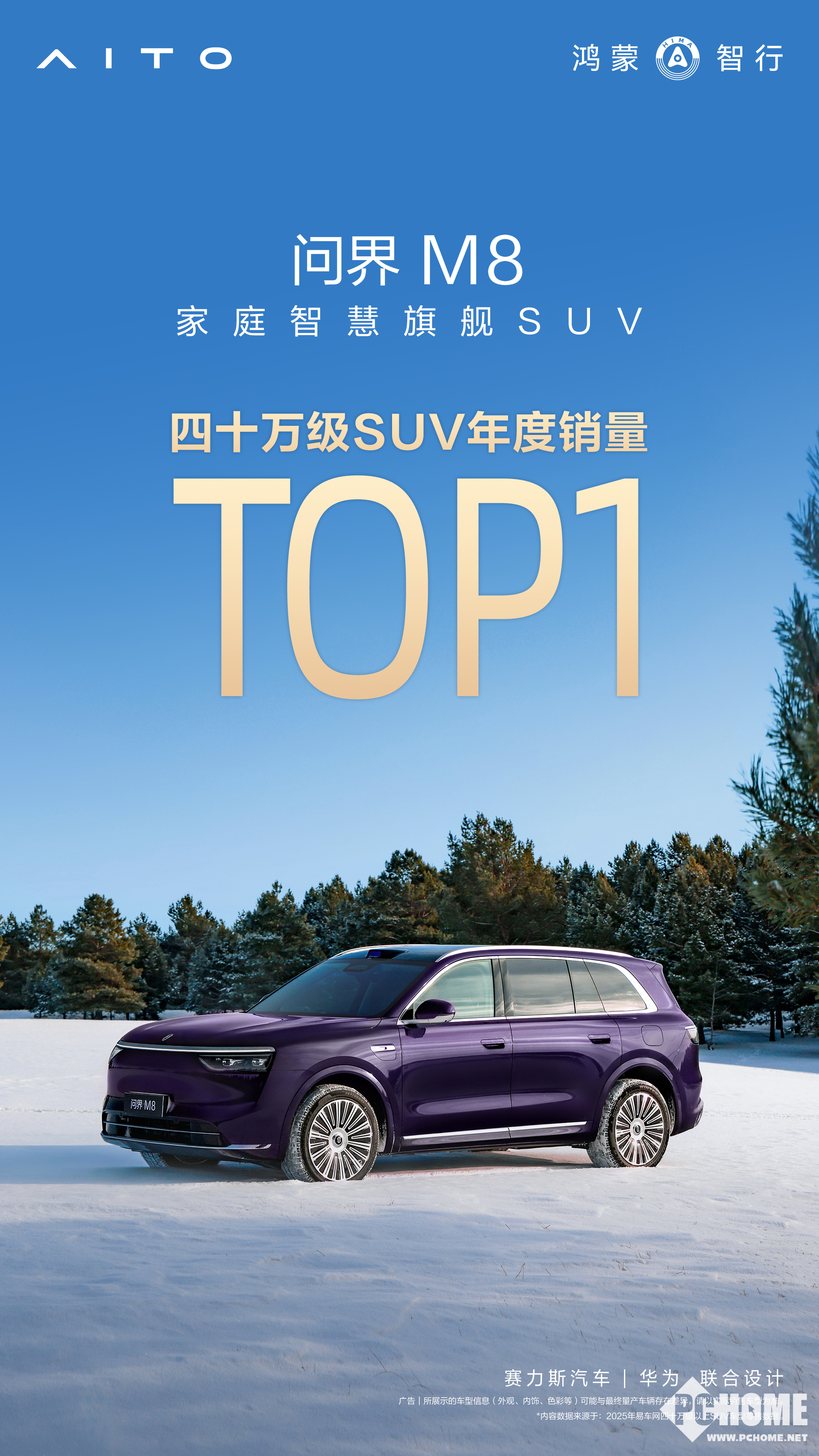 2026年1月15日,鸿蒙智行官宣,问界M8汽车位列2025年度四十万级SUV销量第一。目前问界M8新增限时8000元选配金,预计2-4周内可提车。